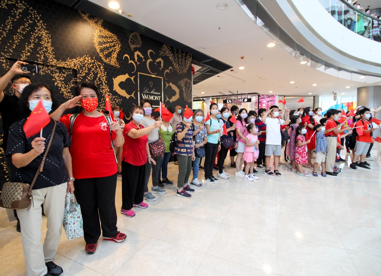 当欢快的《生日歌》交响乐演奏结束后,现场的香港市民自发地喊出了“祝福祖国,生日快乐”的心声,以此来表达对中国共产党建党100周年的生日祝福以及希望祖国繁荣昌盛的美好愿景。每首快闪交响乐演奏结束后,现场都会爆发出雷鸣般的掌声。整个“庆七一快闪交响乐”的活动过程中都伴随着香港市民观众自发地合唱、祝福,以及情不自禁舞动的红色旗帜,香港国际金融中心的中庭成了祝福祖国、为爱共鸣的欢乐广场。
