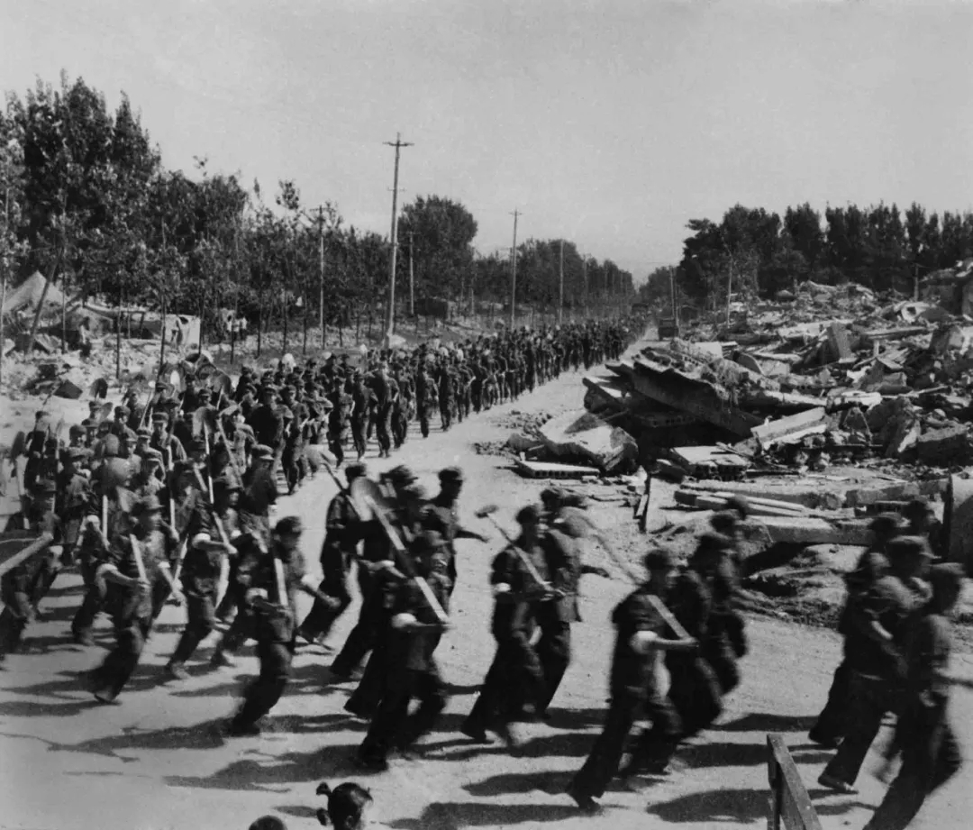 ▲解放军跑步进灾区