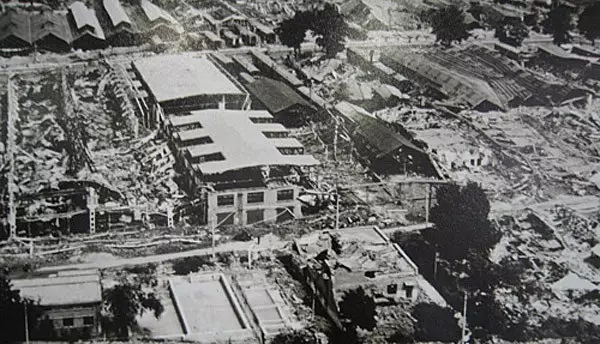 被震毁的唐山机车车辆厂全景