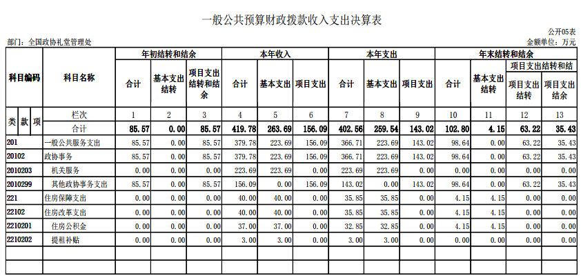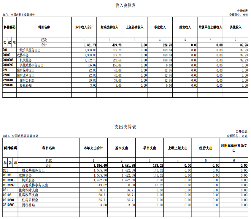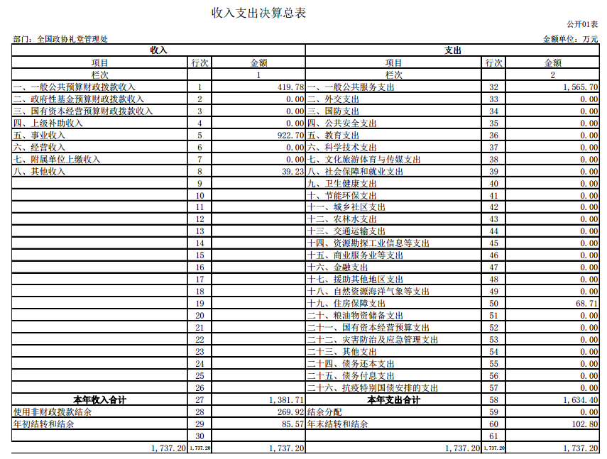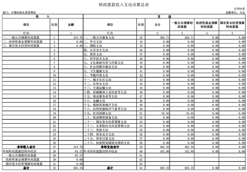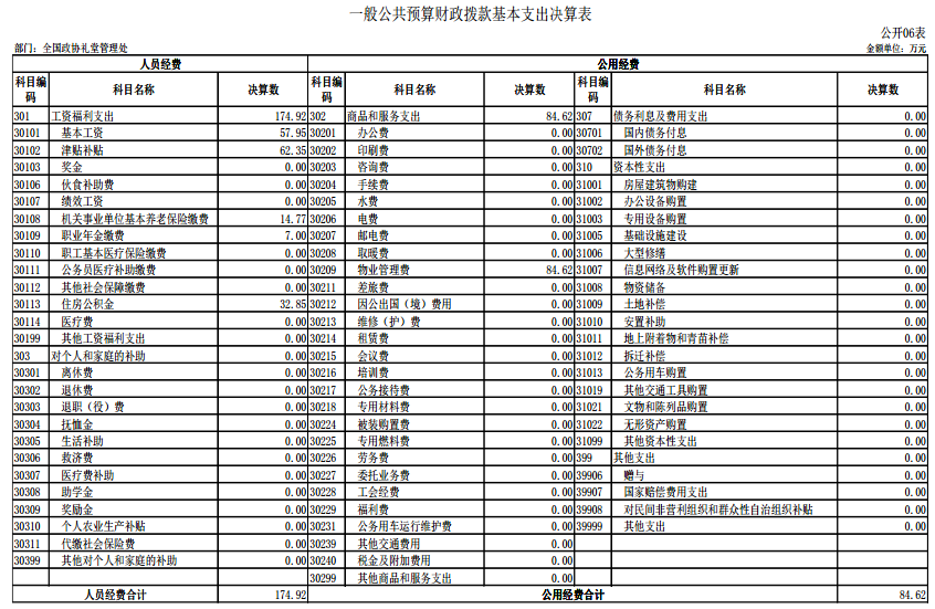 全国政协礼堂管理处2020年度部门决算