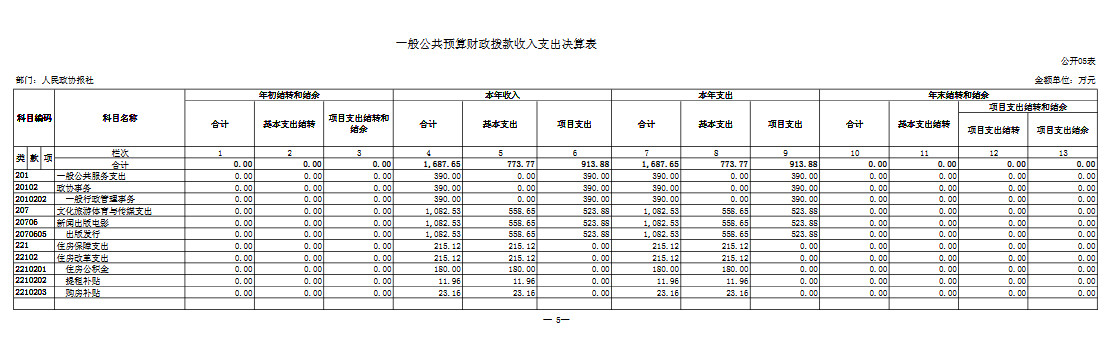 五、 一般公共预算财政拨款收入支出决算表