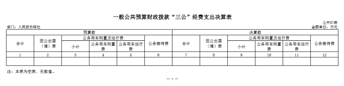 七、 一般公共预算财政拨款“三公”经费支出决算表