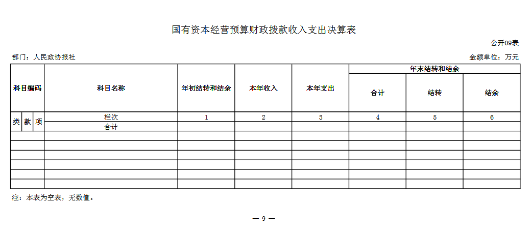 九、 国有资本经营预算财政拨款收入支出决算表