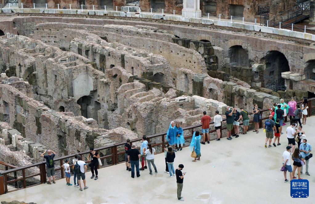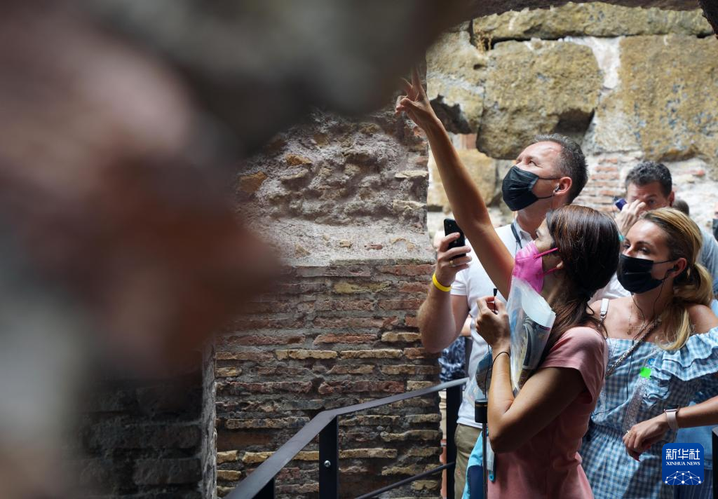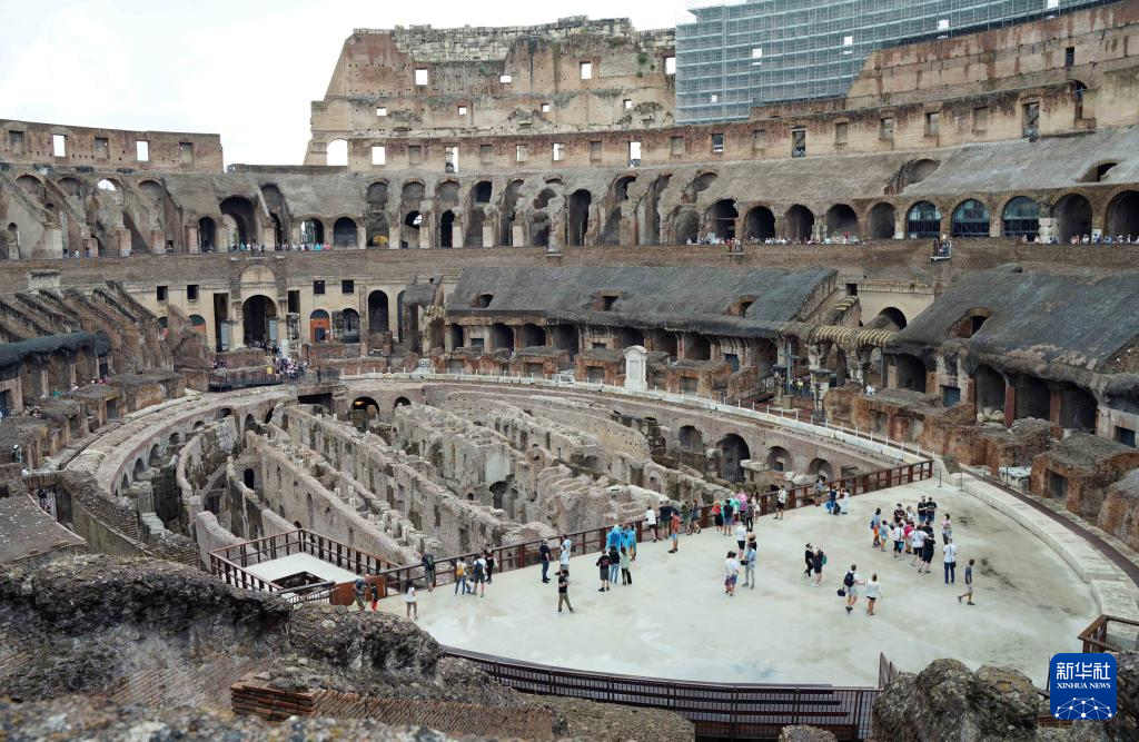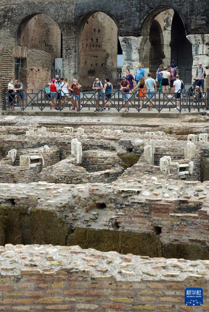 8月24日,游客观看意大利罗马斗兽场的下层区域。 经过一段时间的修复工作后,意大利罗马斗兽场的下层区域于今年6月向公众开放。斗兽场下层区域包含房间和通道等,曾是竞技表演前角斗士和猛兽的容身之处。 新华社记者 金马梦妮 摄