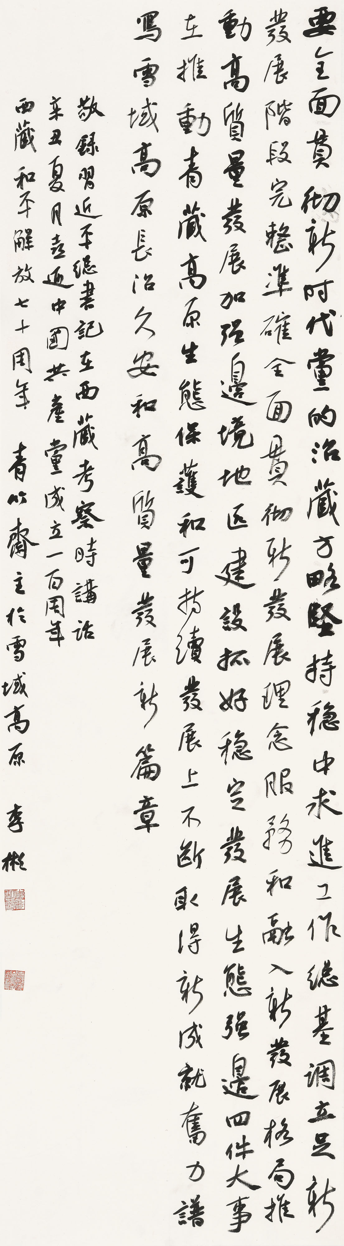 8月28日,由中国文联书法艺术中心、西藏自治区党委宣传部、西藏自治区文联主办,西藏自治区书法家协会、西藏自然科学博物馆承办,西藏美术馆筹建办协办的“李彬捐赠西藏美术馆书法作品公益展”在拉萨开幕。