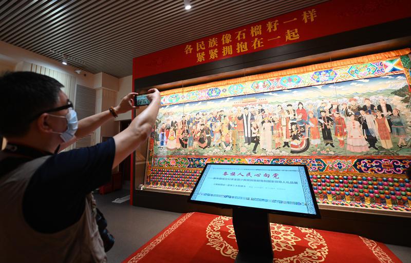 “鉴往知来——中国共产党成立100周年民族工作文献档案特展”则通过科技手段还原展出中国共产党成立以来具有重大历史意义的珍贵文献、档案、图片共计200余件。