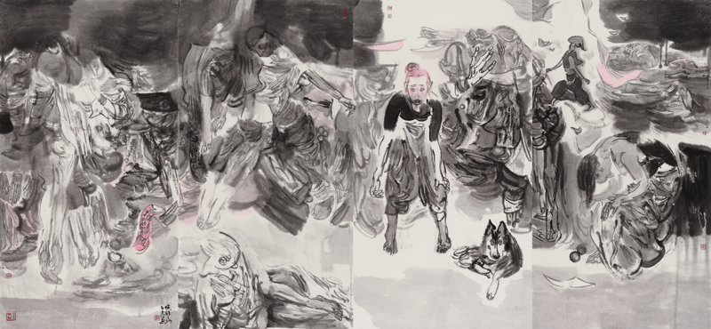 张江舟近年来对中国水墨画进行了非常深入的探索与创新,从今天的展览来看,我主要有三点感受,首先是作品中对人性的发掘非常深刻;再者他形成了自己非常独特的人物造型语言,而这种动态的人物造型也源于他对于人性的深刻观察与思考;最后,张江舟也形成了自己个性化的笔墨图式与极强的画面形式感。