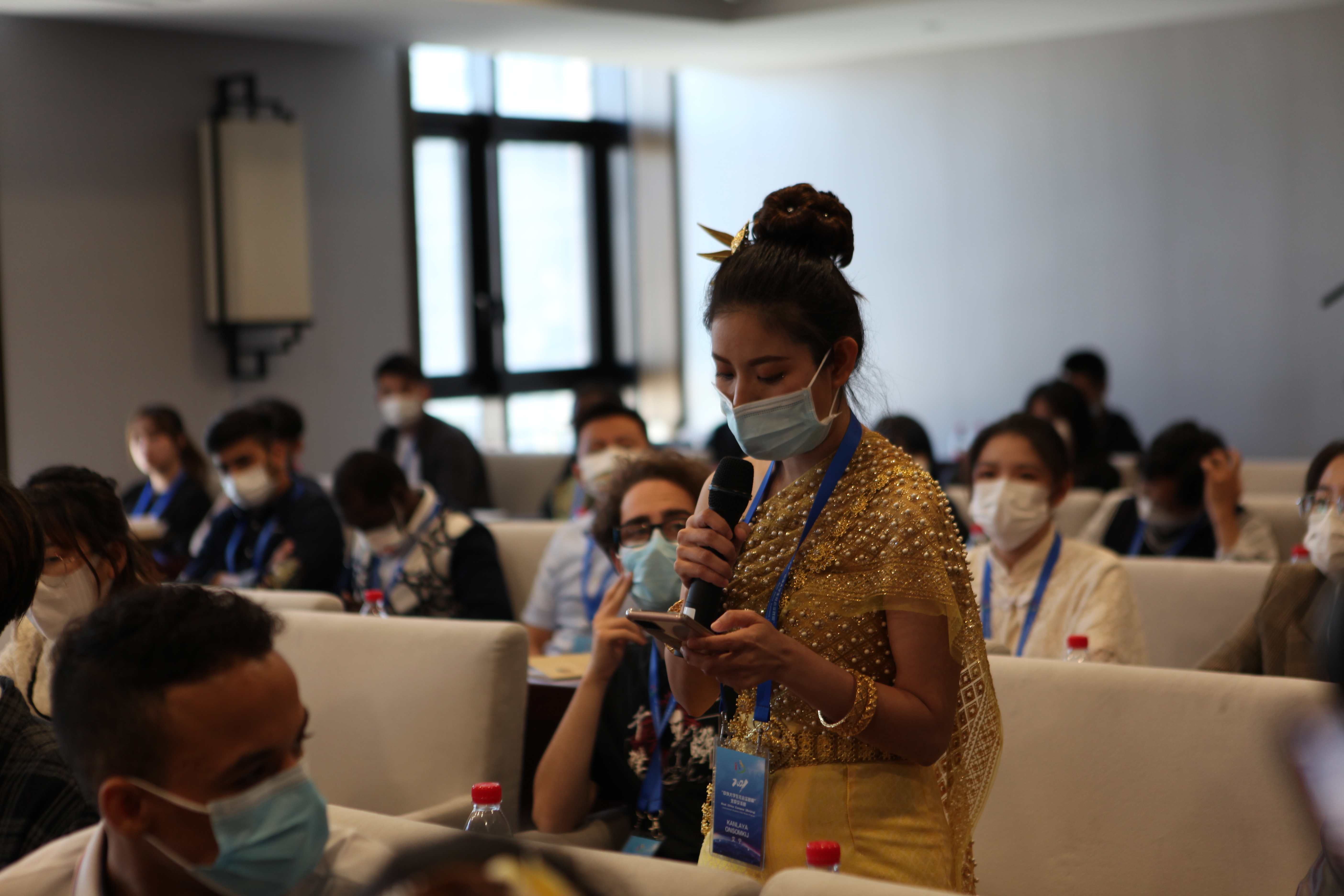 “受疫情影响,泰国经济亮起红灯,请问,中国如何帮助包括泰国在内的东盟国家抗击疫情,恢复经济?”在广西大学就读的泰国留学生艾宁率先举手提问。