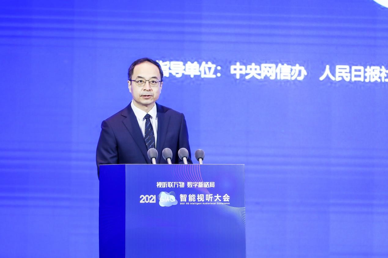 中国传媒大学党委书记、校长廖祥忠,山东省委宣传部副部长、省委网信办主任卢岚,人民日报社山东分社社长徐锦庚及相关企业负责人在主论坛发表主旨演讲?;嵘匣狗⒉剂恕?021年智能视听产业热点研究报告》。