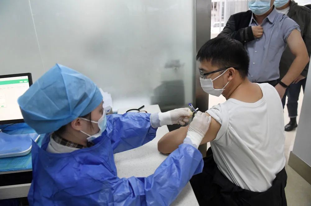 10月16日,在位于合肥市蜀山区琥珀街道的安徽省计划生育科研所医院新冠疫苗接种点,市民在接种新冠疫苗加强针。新华社记者黄博涵摄