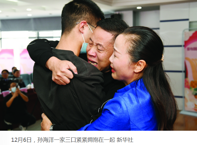 2021年12月6日,对于孙海洋来说,这个日子会铭记一生,已经奔走了14年的他终于可以停下脚步,仔仔细细去看看孙卓。14年过去了,被拐时才4岁的孙卓如今已上高中,比亲生父亲的个子还要高。当天,在深圳市公安局举办的认亲现场,孙海洋肆意地哭着,一家人搂抱在一起,久久不愿分离。