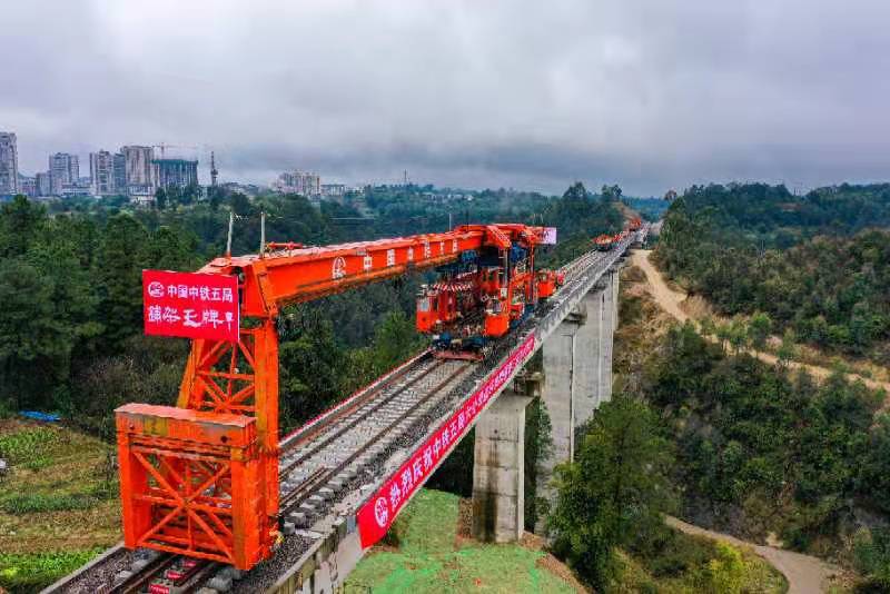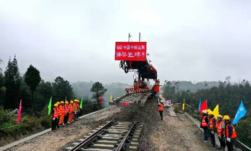 12月28日,随着施工人员将最后一组轨排铺设在四川省内江市威远县连界镇三岔河特大桥桥头路基上,由中铁五局负责施工的连乐铁路正线轨道贯通。连乐铁路建设取得重大阶段性进展,为开通运营通打下了坚实的基础。