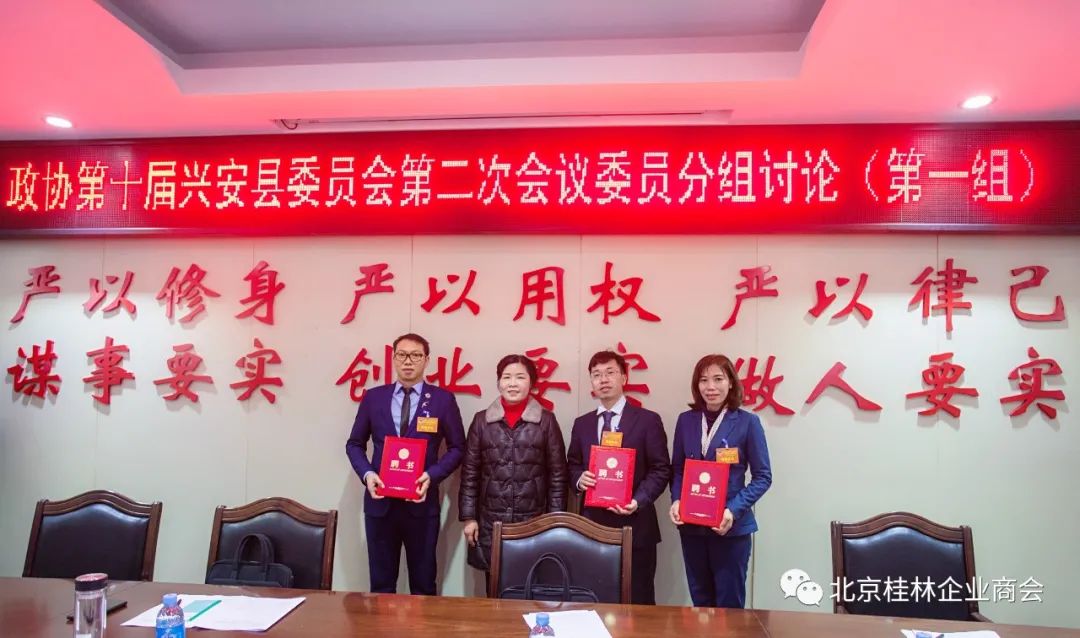 北京桂林企业商会常务副会长雷日晖,党支部书记、副会长李云辉,理事、副秘书长熊孝能,会员胡韬出席此次大会。雷日晖获评优秀政协委员,李云辉、赵勋能、熊孝能受聘为兴安县政协第十届特邀贵宾,经兴安县驻京政协委员集体审议通过,推选熊孝能为兴安县政协委员驻京联络小组组长;胡韬荣获优秀提案奖。