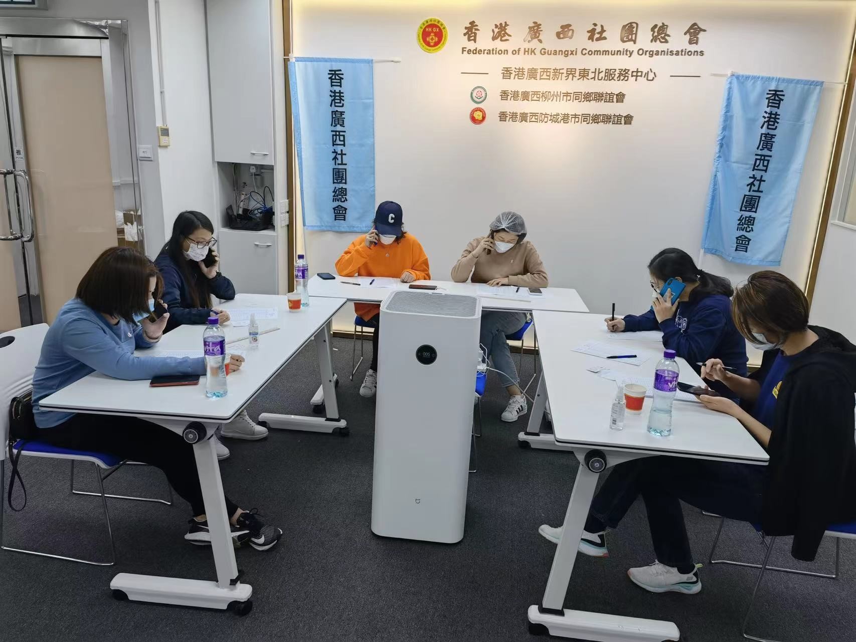 在香港第五波疫情暴发初期,香港广西社团总会(广西社总)就将防疫物疫分发到各服务中心,以便及时向市民及受围封影响的居民派发防疫物资,并同时致电了解围封居民的身体状况。2月18日,广西社总向小区派发防疫物资,当日区内屋苑有6宗确诊个,屋苑法团主席及委员感谢广西社团总会及广西新界东南分会提供及时雨防疫物资予会员,2月23日,广西社总的工作人员又为有需要的会员提供家居雾化消毒及涂层服务。此外,近段时间,广西社总还致电会员详细了解新冠肺炎确诊情况,并组织义工队协助民政处分装快速测试套装。