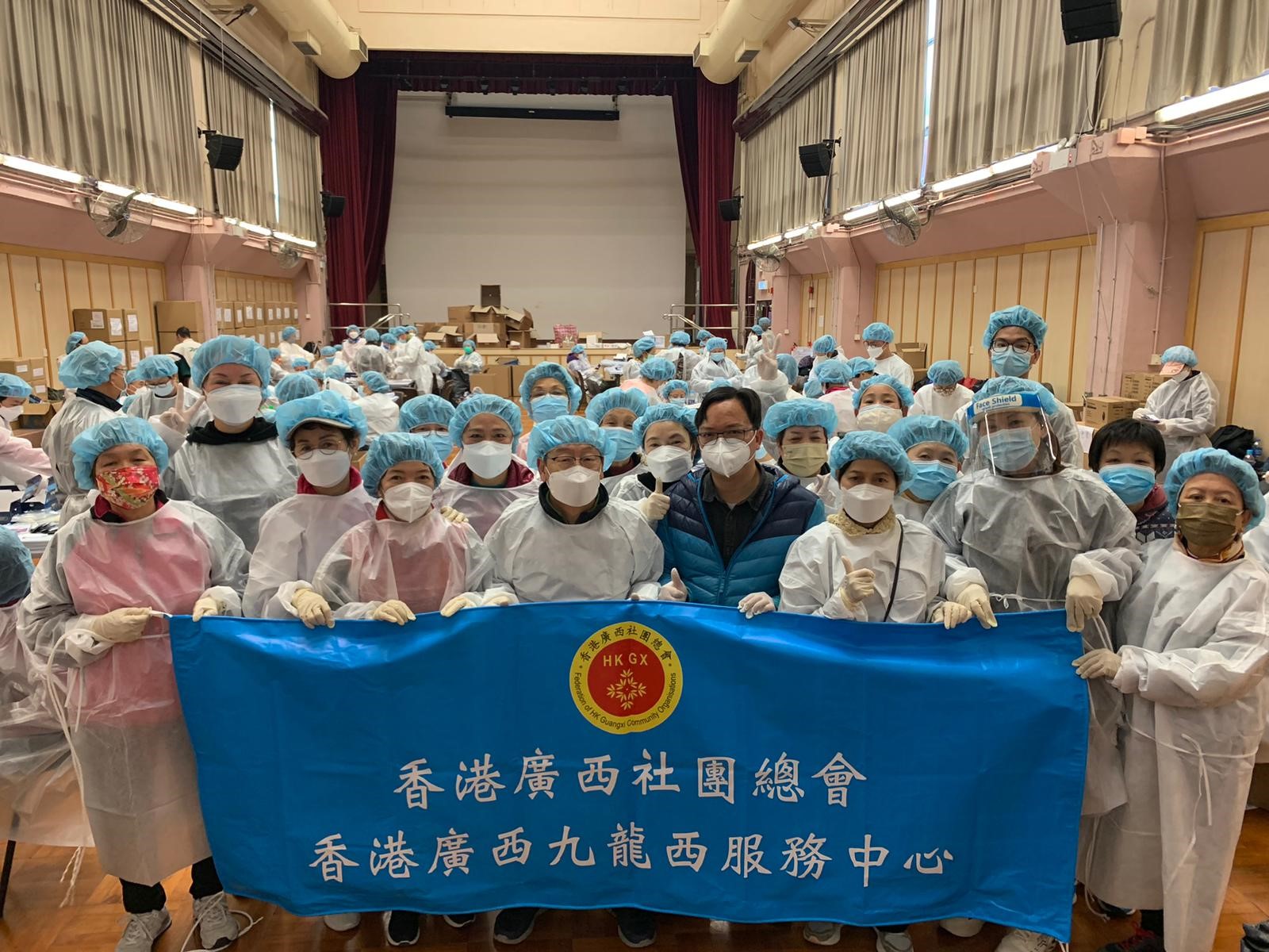 在采访中,记者还了解到早前有元朗区会员染疫后向总会求助,翌日,总会香港广西新界西北服务中心向有关染疫会员送上日常用品及抗疫物资,以解燃眉之急。2月24日至27日,九龙西深水埗区由香港广西崇左市同乡联谊会派出39名义工到石硖尾小区会堂与民政事务处合作包装了4万份抗疫检测包。