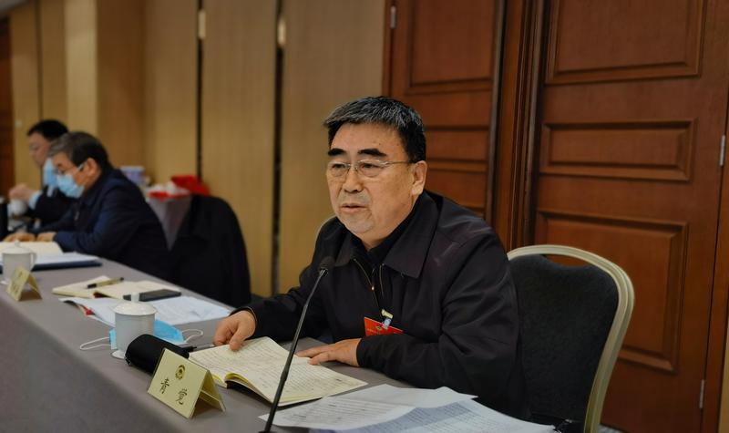 土族委员青觉作铸牢中华民族共同体意识主题发言。 特邀委员记者 茸芭莘那摄