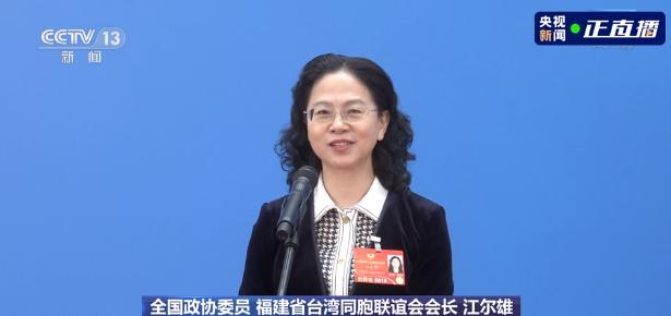 全国政协委员、福建省台湾同胞联谊会会长江尔雄分享了台湾青年在大陆生活创业的故事。她说,台湾青年在大陆发展得很好,未来会更好。