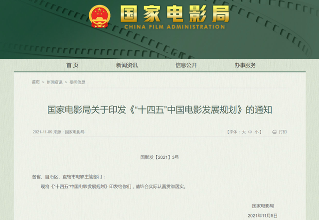 国家层面,2021年11月国家电影局发布了《“十四五”中国电影发展规划》,定下电影事业发展的任务表和计划书。