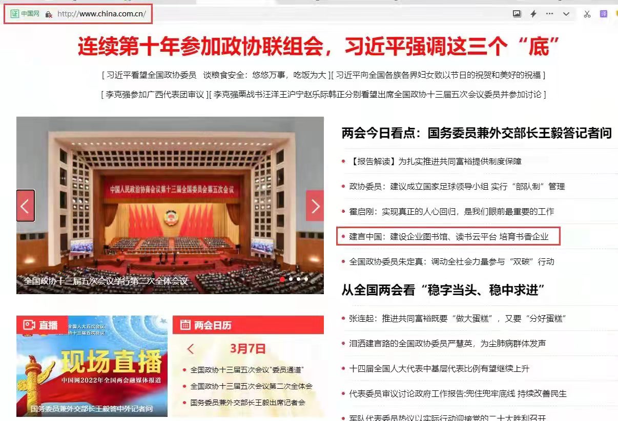《长江日报》大武汉客户端、中新网等发表了关于书香企业的报道《全国政协委员朱永新:推动企业建读书会、图书馆,打造“书香企业”》。