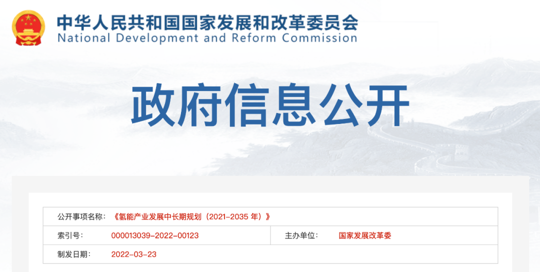 发改委发布《氢能产业发展中长期规划(2021-2035 年)》