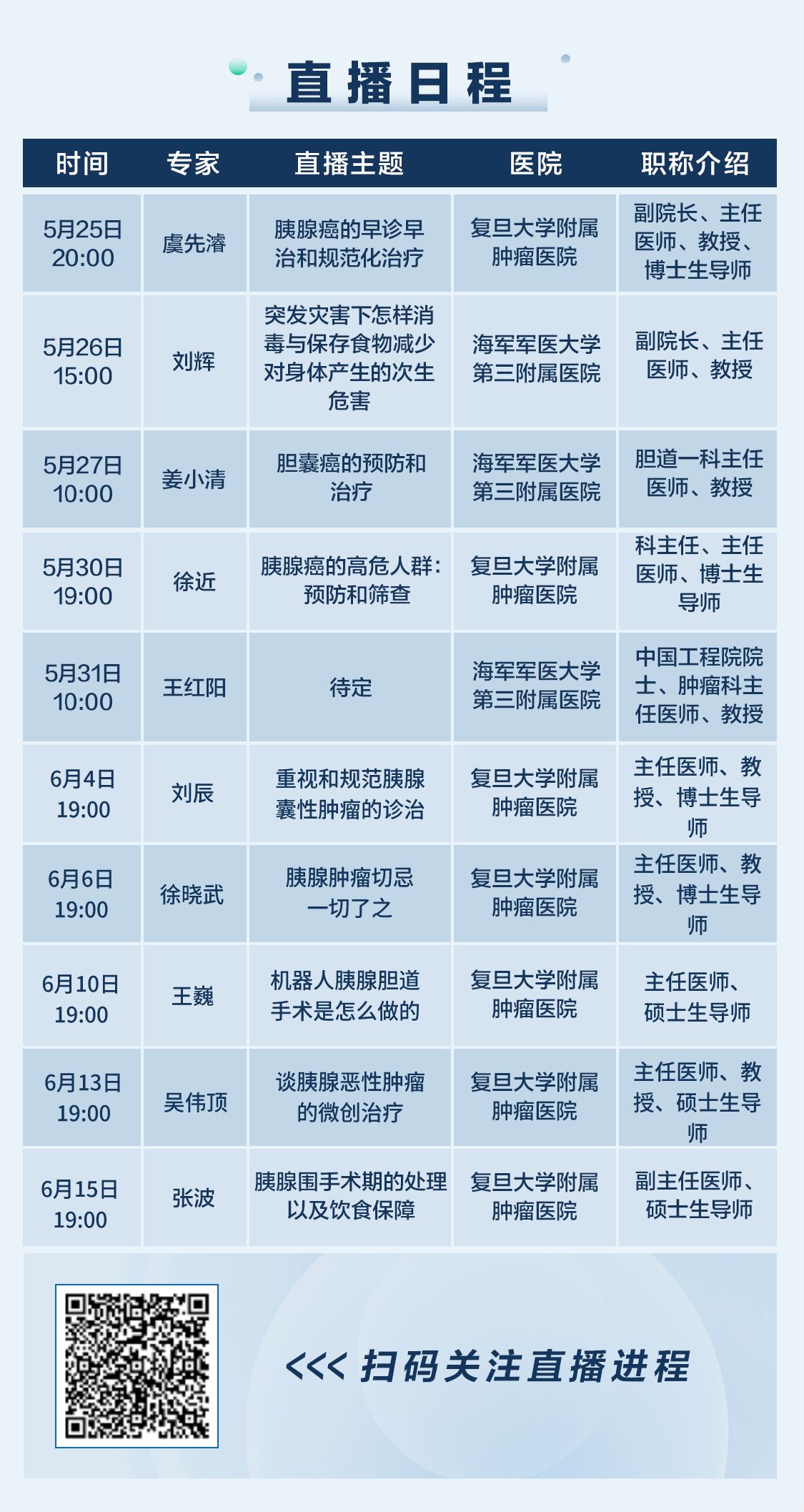 图|胰腺肝胆专场义诊活动部分直播日程(以实际情况为准)