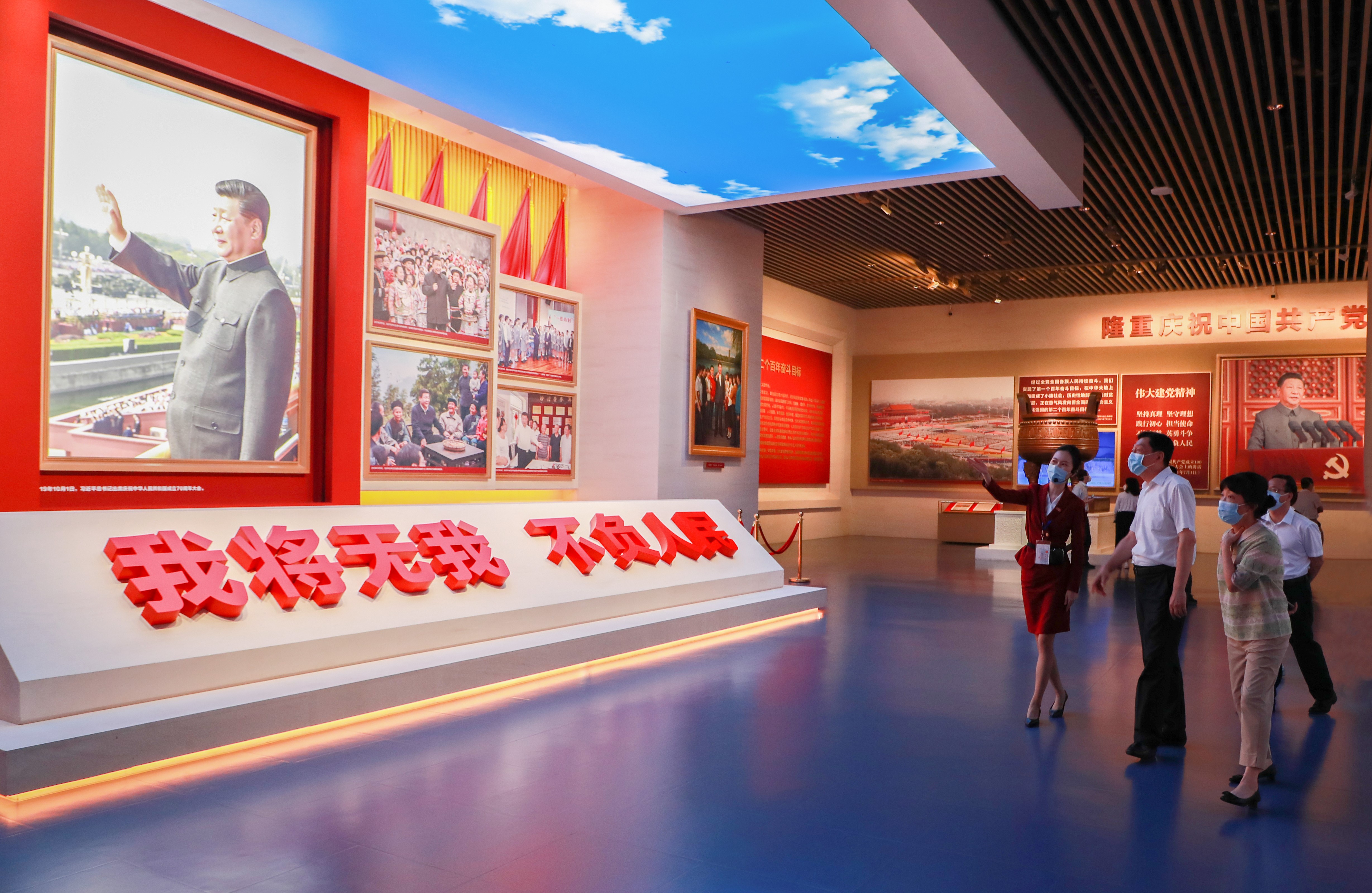 展览分为“建立中国共产党 夺取新民主主义革命伟大胜利”“成立中华人民共和国 进行社会主义革命和建设”“实行改革开放 开创和发展中国特色社会主义”和“推进中国特色社会主义进入新时代 全面建成小康社会 开启全面建设社会主义现代化国家新征程”4个部分,通过2500余幅图片、4500多件套文物实物,全方位、全过程、全景式、史诗般展现了中国共产党波澜壮阔的百年历史。孙大伟一行在一幅幅记录历史变迁的图片前凝望,在一座座凝聚时代精神的雕塑前驻足,在一件件承载苦难辉煌的文物前沉思,全神贯注听取讲解介绍,详细询问了解有关情况,深刻感悟党的思想伟力。