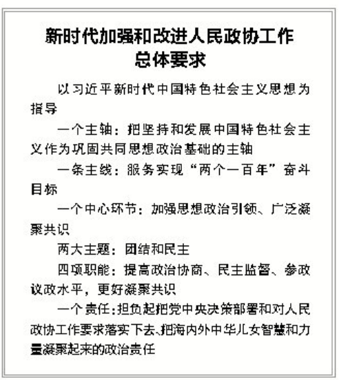 习近平总书记在讲话中,提出了新时代加强和改进人民政协工作的总体要求。