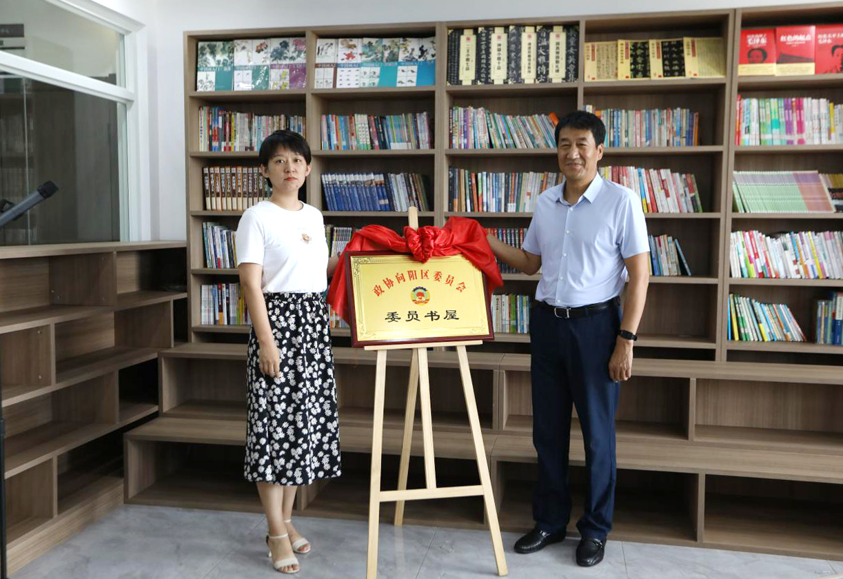 日前,黑龙江省鹤岗市向阳区政协在胜利南翼街道办事处红叶社区举行“委员书屋”揭牌仪式暨“崇学善读,书香政协”——区政协委员读书分享会。据了解,区政协建立“委员书屋”,旨在让委员利用自身的影响力宣传带动各界别群众开展读书活动,以实际行动迎接党的二十大胜利召开。(孟兆香 摄)