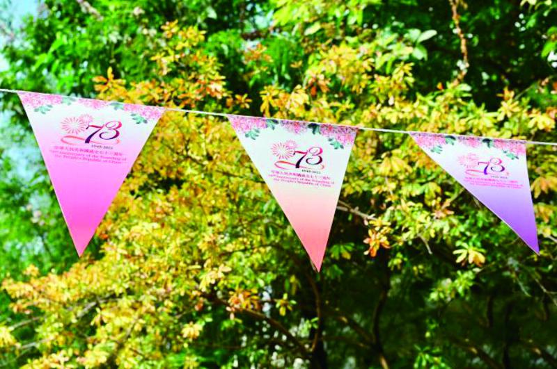 国庆节临近,港澳同胞庆祝国庆氛围逐渐浓烈:空中挂满了鲜艳的国旗、区旗,建筑物上张贴了庆祝中华人民共和国成立73周年的巨幅海报,电车也披上了“中国红”穿梭在街头巷尾,一片喜庆祥和;海外华侨华人心系祖(籍)国,举办或参与着线上和线下各类活动,与当地各界朋友共迎中华人民共和国成立73周年,祝愿中国繁荣昌盛。
