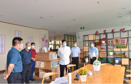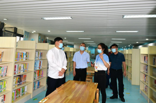 广西贺州平桂区政协主席吴航在区图书馆开展“书香政协 香凝平桂”委员读书实践活动中心建设调研。(平桂区政协供图)