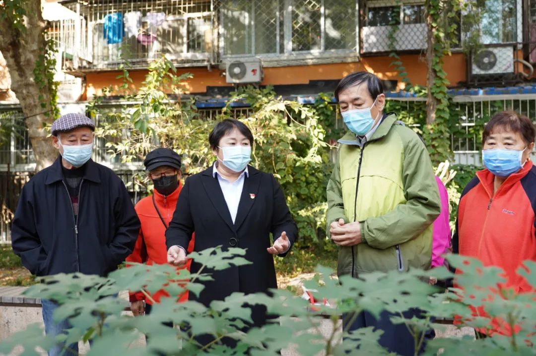 李美红和居民一起研究老旧小区改造工作。人民政协报·人民政协网记者 贾宁 摄