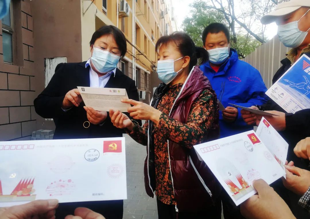 李美红还将贴有党的二十大纪念邮票的大会首日封送给居民。人民政协报·人民政协网记者 贾宁 摄