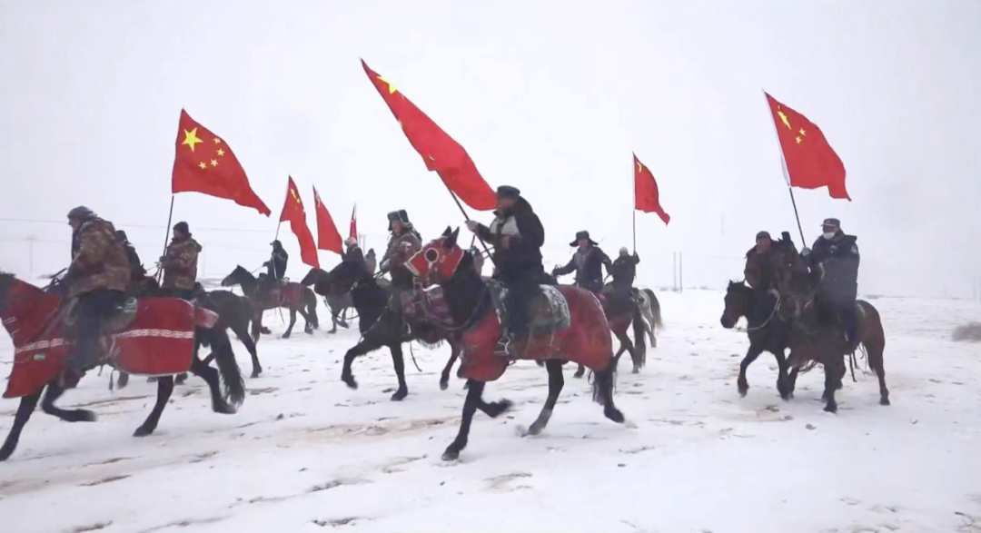 今年1月20日,中国越野滑雪队结束了在博州温泉县的训练,出征北京冬奥会。为了送冬奥健儿一程,22位牧民高擎国旗,策马雪原。苍茫天地间的一抹红,让网友泪目,直呼“这一幕看得热血沸腾!”