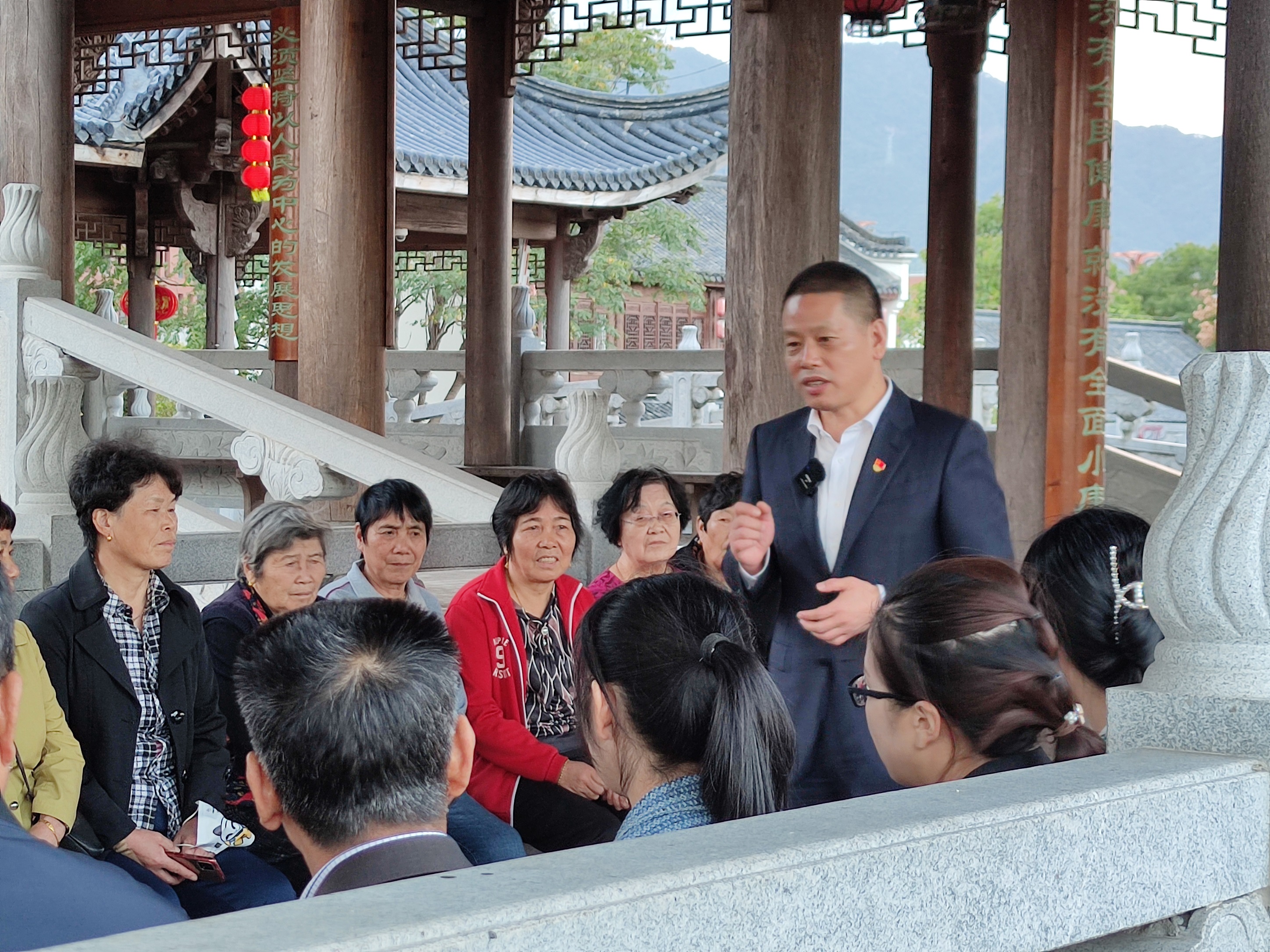 傅平均讲得生动,大家也听得格外认真,不时响起阵阵掌声,让这段廊桥上的二十大精神宣讲引人入胜。