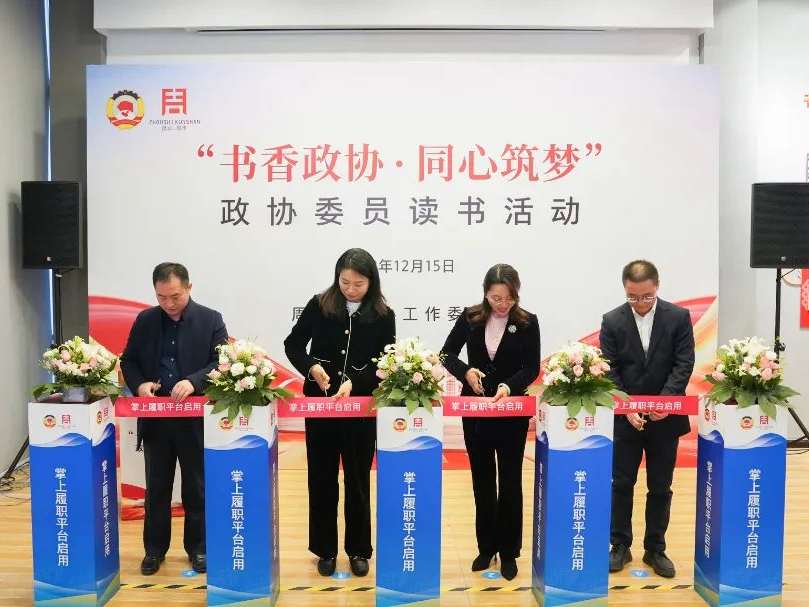 昆山市政协提案委副主任张宇、市政协社事委副主任周红芳、市政协委员武军、周市镇政协工委秘书朱扬君共同为履职平台启用剪彩。