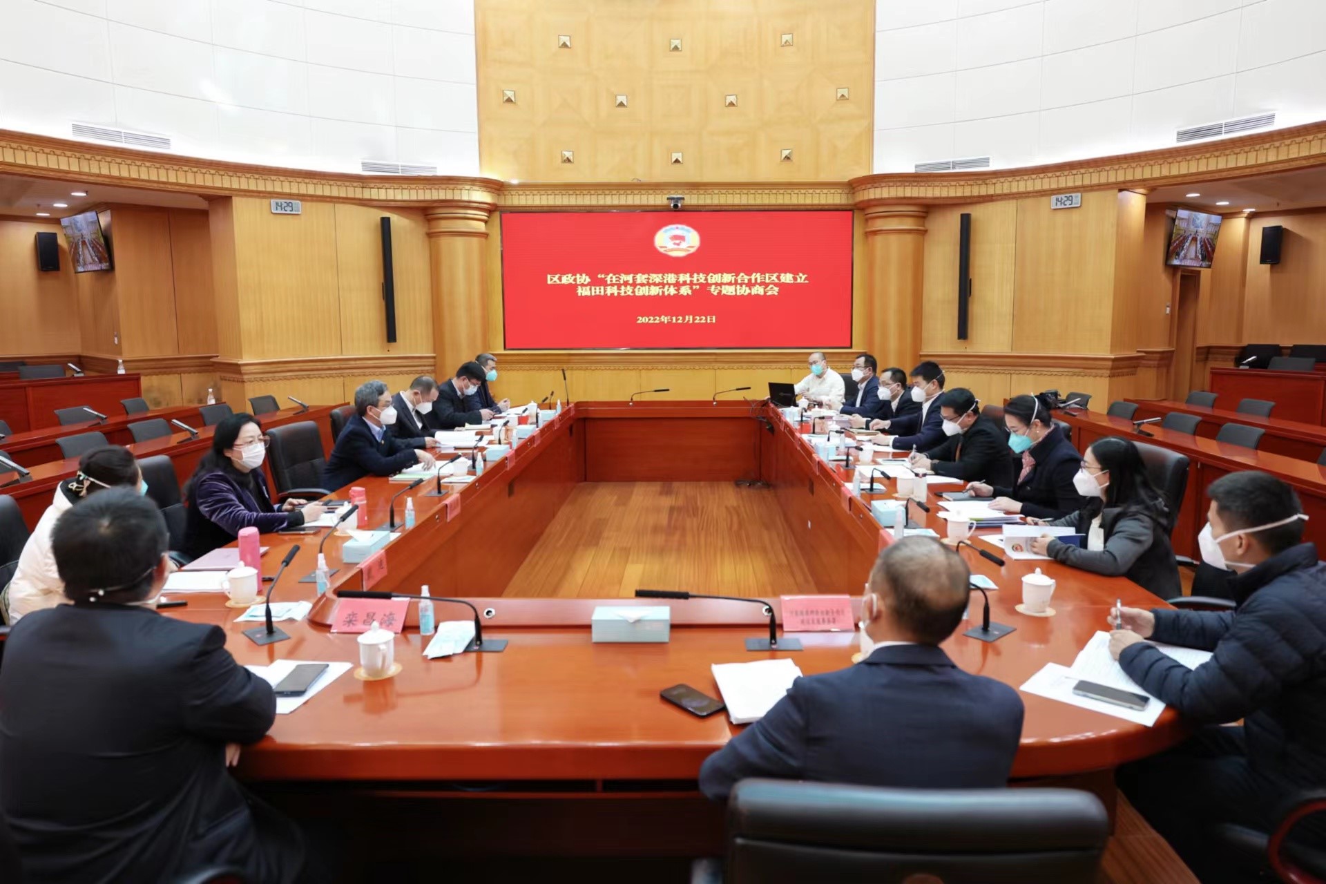 12月22日,深圳市福田区政协召开“在河套深港科技创新合作区建立福田科技创新体系”专题协商会,部分政协委员与区政府领导、相关职能部门面对面协商交流,共谋河套深港科技创新发展大计。
