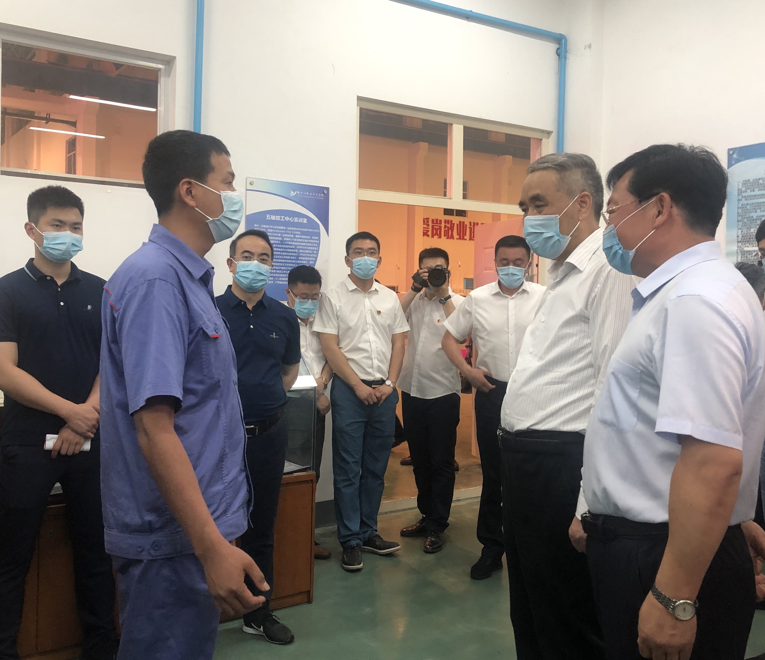 调研组围绕“充分发挥职业教育在乡村振兴中的作用”在黑龙江省哈尔滨市职业技术学院实训车间开展专题调研。