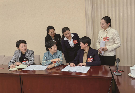 3月5日下午,在妇联界20组小组讨论会间隙,委员们继续就政府工作报告的有关内容进行讨论。 (特邀委员记者 王淑惠 摄;邀请支持:本报记者 路强)