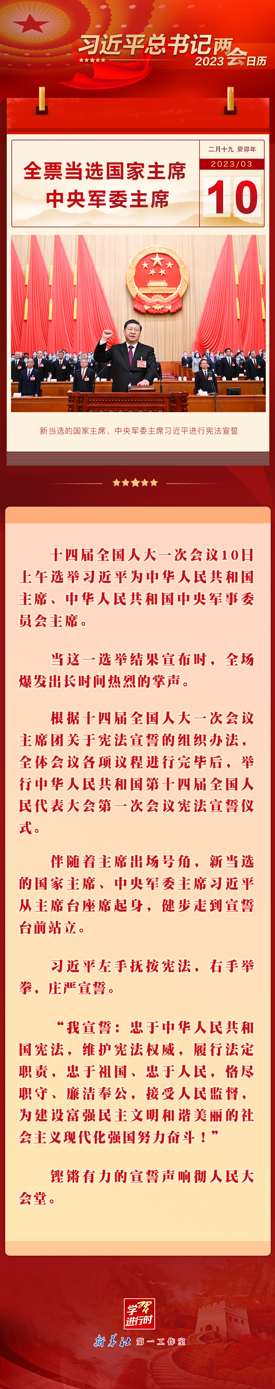 习近平总书记2023两会日历:3月10日全票当选国家主席中央军委主席