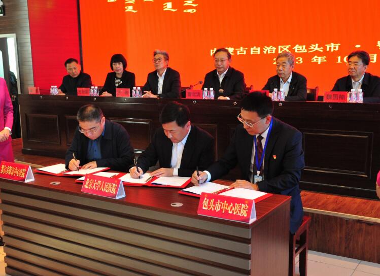 启动仪式现场,全国政协常委、北京大学人民医院院长王俊院士团队,中国生物医学工程学会副理事长、清华大学医学院讲席教授程京院士团队,与包头市中心医院、鄂尔多斯市中心医院签署专科提升帮扶协议。