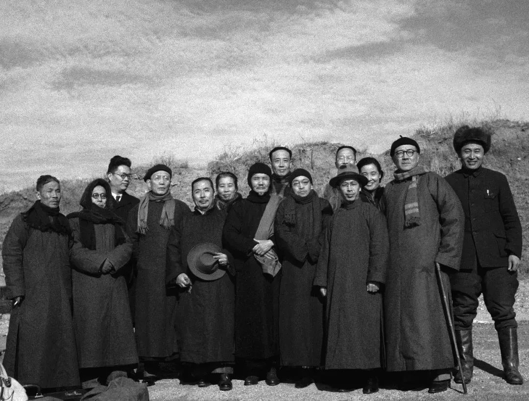 △第二批北上民主人士登陆后合影。左起:翦伯赞、马叙伦、宦乡、郭沫若、陈其尤、许广平、冯裕芳、侯外庐、许宝驹、沈志远、连贯、曹孟君、丘哲。