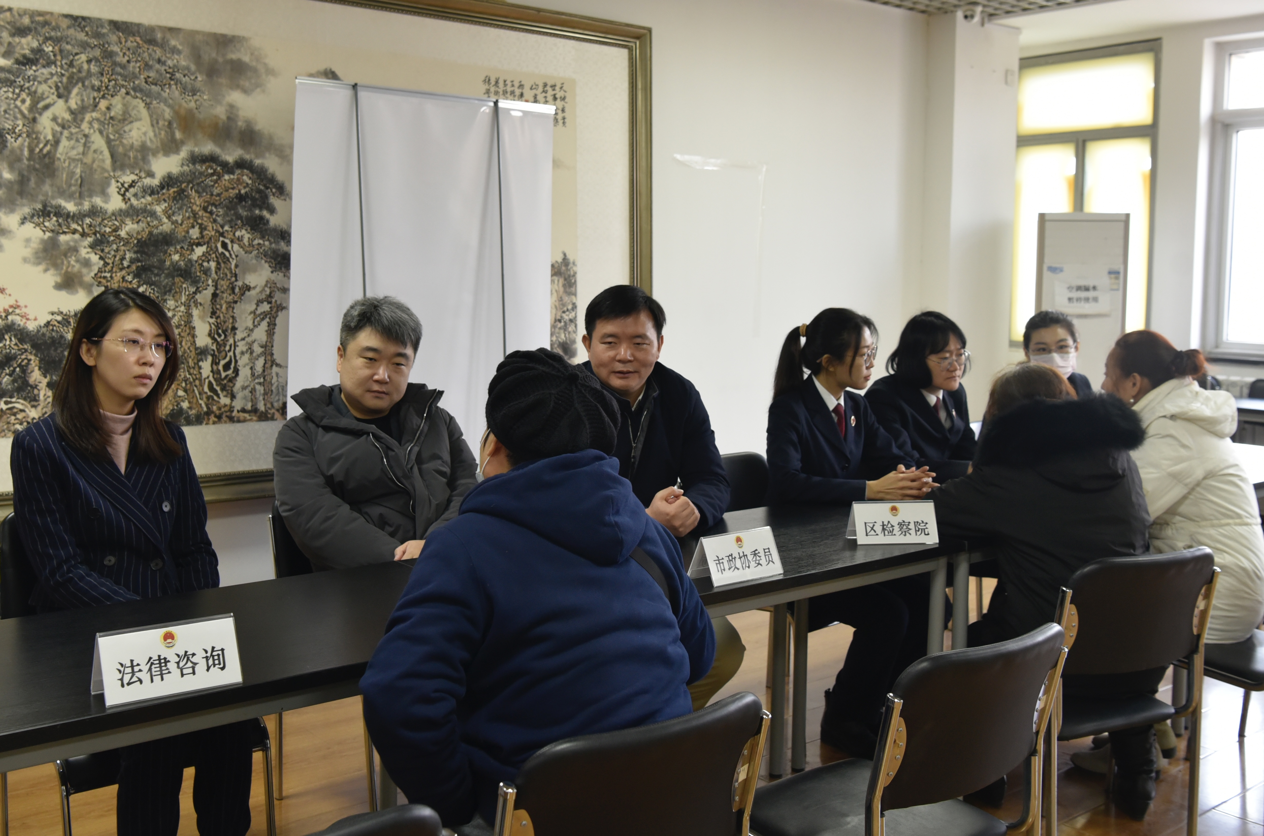 屋外寒风凛冽,屋内气氛却愈加高涨。在互动环节,具有资深法律从业背景的两位市政协委员,围绕宪法出题设问,以“唠家?!钡姆绞酱ハ芊ㄖ?,潜移默化地拉近了与人民群众的距离,提升了普法效果。活动结束后,社区居民意犹未尽,争相咨询法律问题,政协委员和检察干警就地“摆摊设点”,耐心细致地解答居民朋友们提出的法律问题。