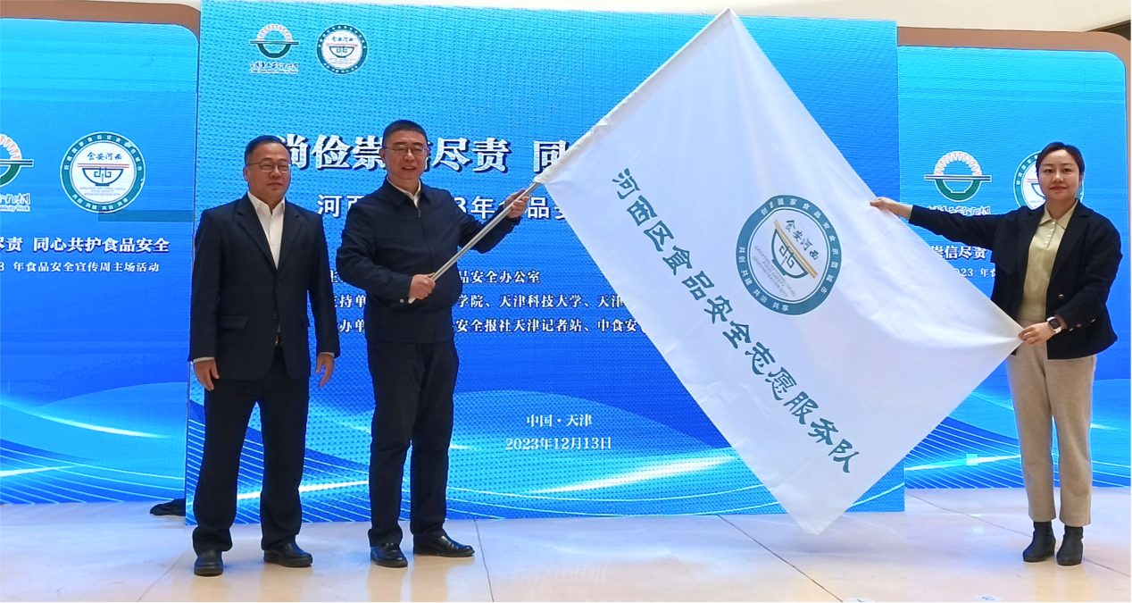 据了解,天津市区政协委员高度关注食品安全工作,提案建议相关部门多措并举加强食品安全保障。今年年初,河西区市场监管局构建社会共治新格局,成立了由社区网格员、社区工作积极分子、食品检测机构专业人员、高校师生等组成的河西区食品安全志愿服务队伍,创建“守护好‘食’光,河西在行动”活动品牌,积极开展一系列进社区、进商超、进学校、进企业的“四进”活动,宣传覆盖近1.5万人次。河西区还联合天津市食品安全科普基地共建,与天津科技大学携手成立河西区食品安全志愿服务队。活动现场,天津市市场监管委党组成员、副主任罗中棠为服务队授旗。