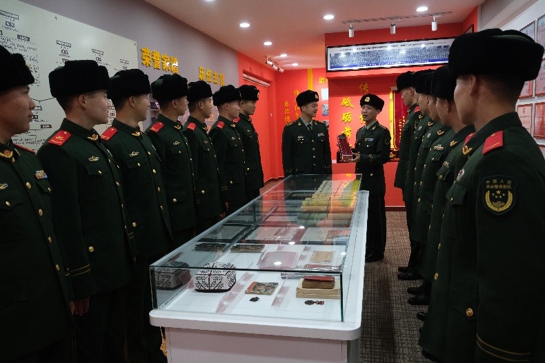 人民军队光荣传统是激励团结奋进的丰厚营养。中队驻守在英雄城市锦州,红色资源就在“家门口”,新兵下队第一课就是参观辽沈战役纪念馆,官兵走出营门10多分钟就能到达萧军纪念馆,中队通过红色讲解员义务讲解、开展英雄城市英雄兵故事会、邀请抗美援朝老兵讲传统等多样形式,让官兵在耳濡目染中感悟革命先辈意志品质,激发投身强军实践的内在动力。