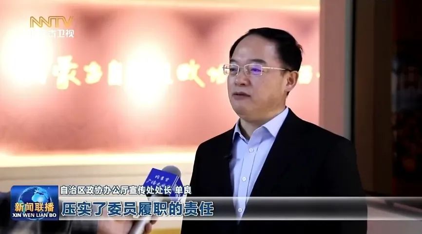 自治区政协办公厅宣传处处长 单良 压实了委员履职的责任。2023年,在自治区政协主席会议成员的示范引领下,523名自治区政协委员全部签订履职承诺书,全部完成“六个一”履职任务。