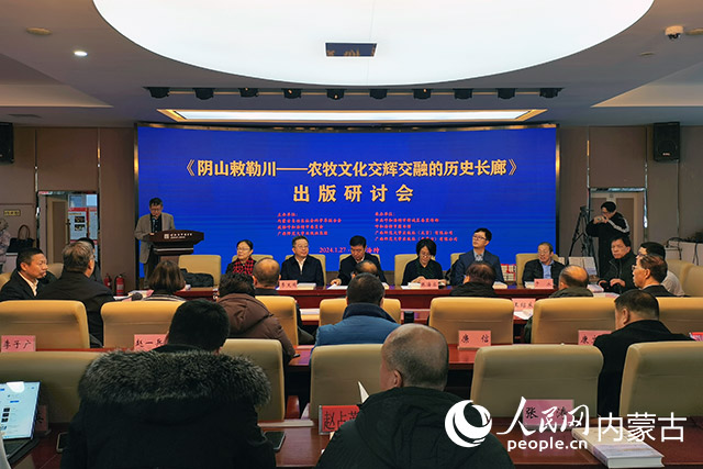 人民网呼和浩特1月27日电 (富丽娟、实习生弓媛媛)1月27日,《阴山敕勒川——农牧文化交辉交融的历史长廊》出版研讨会在呼和浩特市图书馆举行,此次活动由内蒙古自治区社会科学界联合会、政协呼和浩特市委员会、广西师范大学出版社集团主办。长江学者纳日碧力戈,以及来自中国传媒大学、内蒙古大学、内蒙古师范大学、内蒙古科技大学、内蒙古博物院等高校和科研机构的60余名专家学者参加了活动。