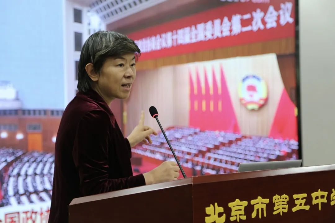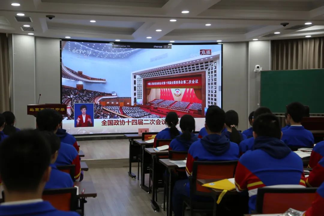 3月4日,是全国政协十四届二次会议开幕的日子,北京市第五中学高一年级学生代表,在北京教育科学研究院特级教师、正高级教师,北京青少年创新学院主任张毅,东城区教委副主任刘羽,北京五中教育集团党委书记、校长王蕾和北京市第五中学书记陈颖的陪伴下,共同观看了开幕会。