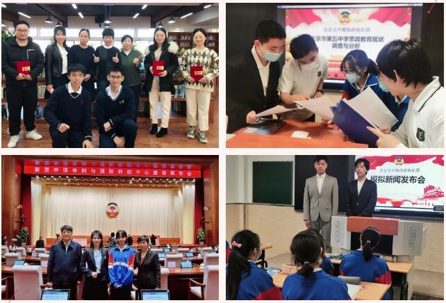 北京五中作为北京市首批模拟政协基地,已经走过了6个年头,学生们在王蕾校长带领下,在基地教师指导下,观察自己身边的时政热点、社会现象,模拟提出合理化的意见和建议,撰写模拟政协提案,放眼社会、心系家国。学校模拟政协取得丰硕成果,成为立德树人的重要阵地。