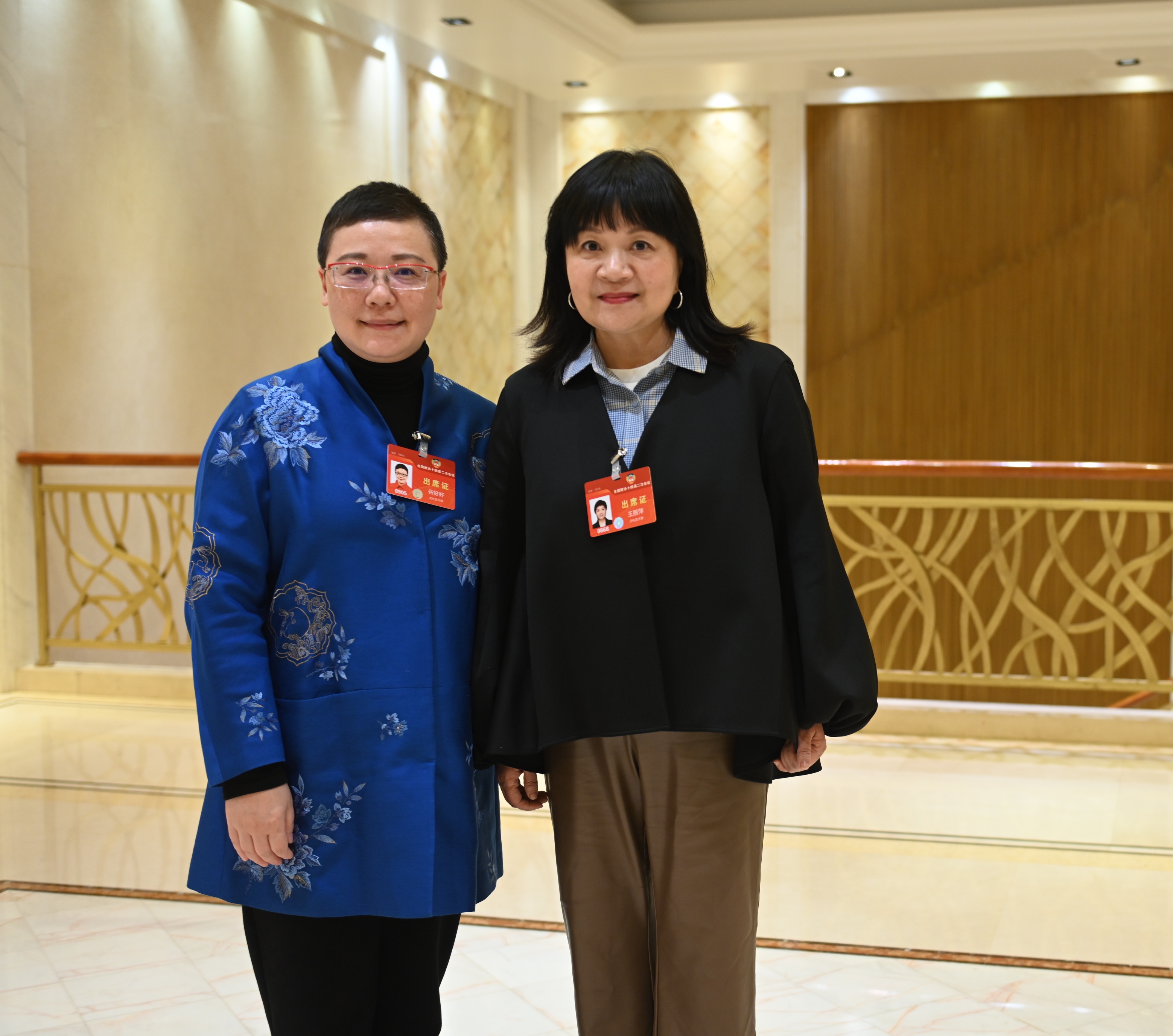 全国政协委员、中国视协副主席王丽萍(右)和全国政协委员、上海市文联党组成员谷好好(左)