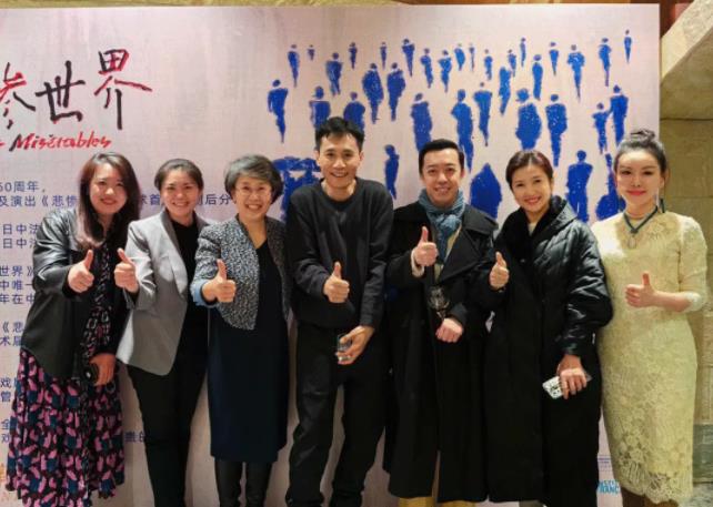 ▲阚凌云(右一)与央华版《悲惨世界》支持单位北京市文联领导和部分主创人员等在一起